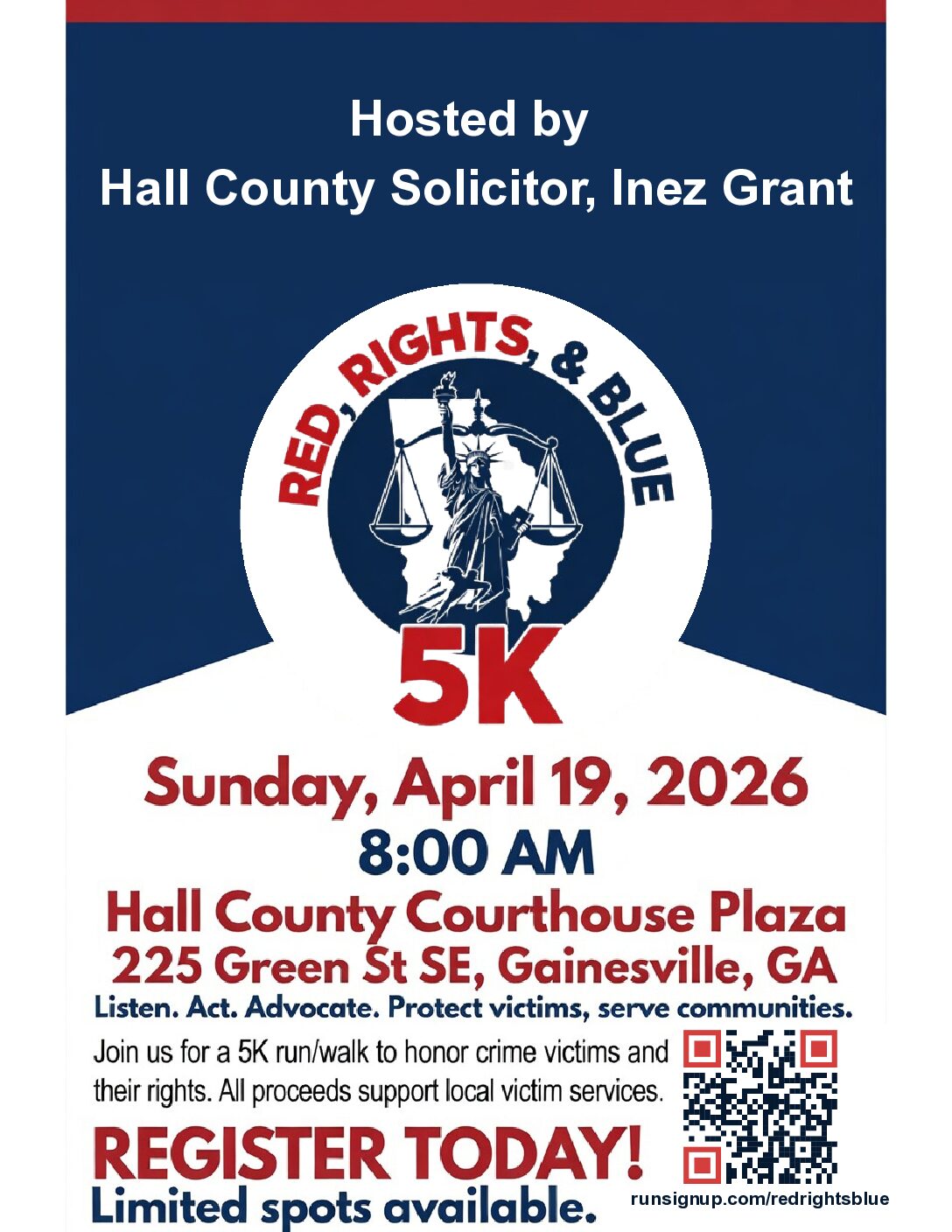 Join us for the Red, Rights, & Blue 5k Event on Sunday, April 19th, 2026!